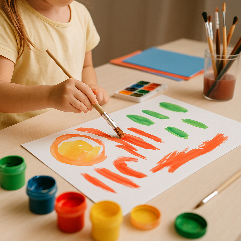 Mein kreatives und kunsttherapeutisch orientiertes Angebot richtet sich an Kinder und Jugendliche mit ganz unterschiedlichen Bedürfnissen. Besonders profitieren Kinder mit seelischen Belastungen, etwa nach Trennung, Verlust, Krankheit oder Erfahrungen von Mobbing, sowie Jugendliche mit innerer Unruhe, Selbstzweifeln oder Rückzug. Auch nichtsprechende Kinder oder Kinder, die mit Unterstützter Kommunikation arbeiten, finden im kreativen Ausdruck eine Form, ihre Gefühle sichtbar zu machen und in Kontakt zu treten. Für Kinder mit Autismus, ADHS oder erhöhter sensorischer Empfindsamkeit bietet das Gestalten einen geschützten Rahmen, in dem sie Reize sortieren, innere Strukturen entwickeln und Selbstwirksamkeit erleben können. Ebenso unterstützt kreatives Arbeiten Kinder und Jugendliche mit Behinderung, die über Farben, Bilder und Formen neue Ausdruckswege entdecken möchten. Kreative Prozesse eignen sich außerdem, um Konzentration zu fördern, emotionale Spannungen zu lösen und das Selbstbewusstsein zu stärken. Auch Kinder mit geringer Frustrationstoleranz, niedrigem Selbstwert oder sozialem Rückzug können im künstlerischen Tun Sicherheit, Orientierung und innere Stabilität finden. Geschwisterkinder, Pflegekinder und junge Menschen in belasteten Lebenssituationen erleben hier einen Raum, in dem ihre eigenen Gefühle Platz haben und sie innere Ordnung finden dürfen. Kreatives Arbeiten schafft damit vielfältige Möglichkeiten, Entwicklung zu begleiten, Ausdruck zu ermöglichen und Entlastung zu fördern.